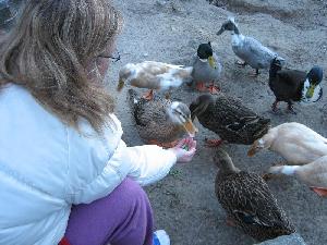 are those same ducks as adults. Some will eat out of our hands -