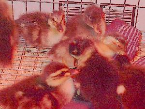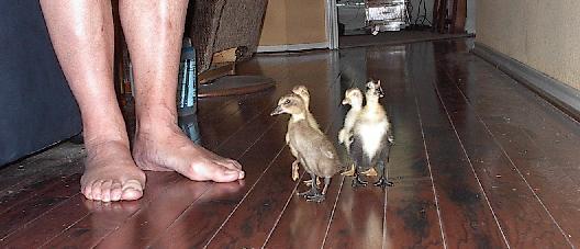 This page will be changing a lot. We have really gotten interested in raising ducks. We haven't had a lot of lucks with the hens sitting on their eggs, so we bring a few in each spring and incubate them in the house. What a great experience! There is nothing like shining a flashlight into a duck egg and seeing the little guy moving around in there. Plus, the begin peeping about 2 days before they hatch - so your little egg is bouncing around in the incubator and talking to you. It's really fun. We have a collection of types - mainly Rouens (that look a lot like Mallards) and Indian Runners. Indian Runners are a different sort of duck. They look like bowling pins on legs. I order the eggs from a woman in Wimberley and hatch them in the classroom with my kids. Her ducks are show quality and a beautiful mixture of colors. All the ducks have been raised by Honkher the goose.