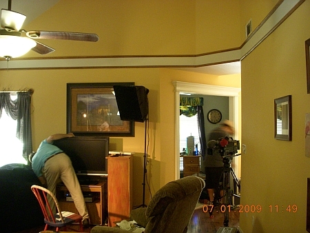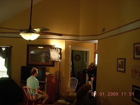 First they had to rearrange our living room to have a good background along with room for their cameras.