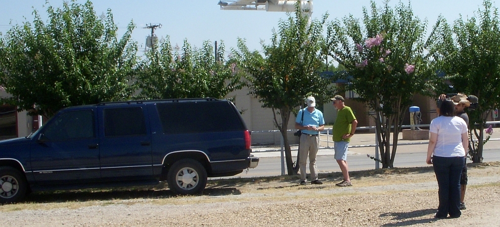In the end - we all said goodbye. The guys were so good and professional. John was the real deal - has worked on several movies with folks like Helen Hunt and Mickey Rooney. He filmed the original pilot for America's Most Wanted as well as Ripley's. We ate lunch at Cowboys and he told us wonderful stories about people has met such as a blind-from-birth painter who painted nature scenes (how in the world?) and a guy who could write the entire Lord's prayer, legibly, on a piece of rice. What an interesting life! He's spent a week filming the lights of Marfa and then with a guy who dons a specialized suit to clean out industrial septic systems. We just had more fun talking to him.